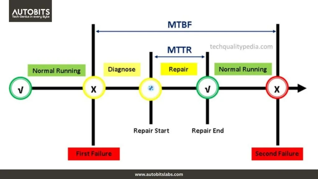• A high MTTR usually means poor maintenance processes or a lack of spare parts.